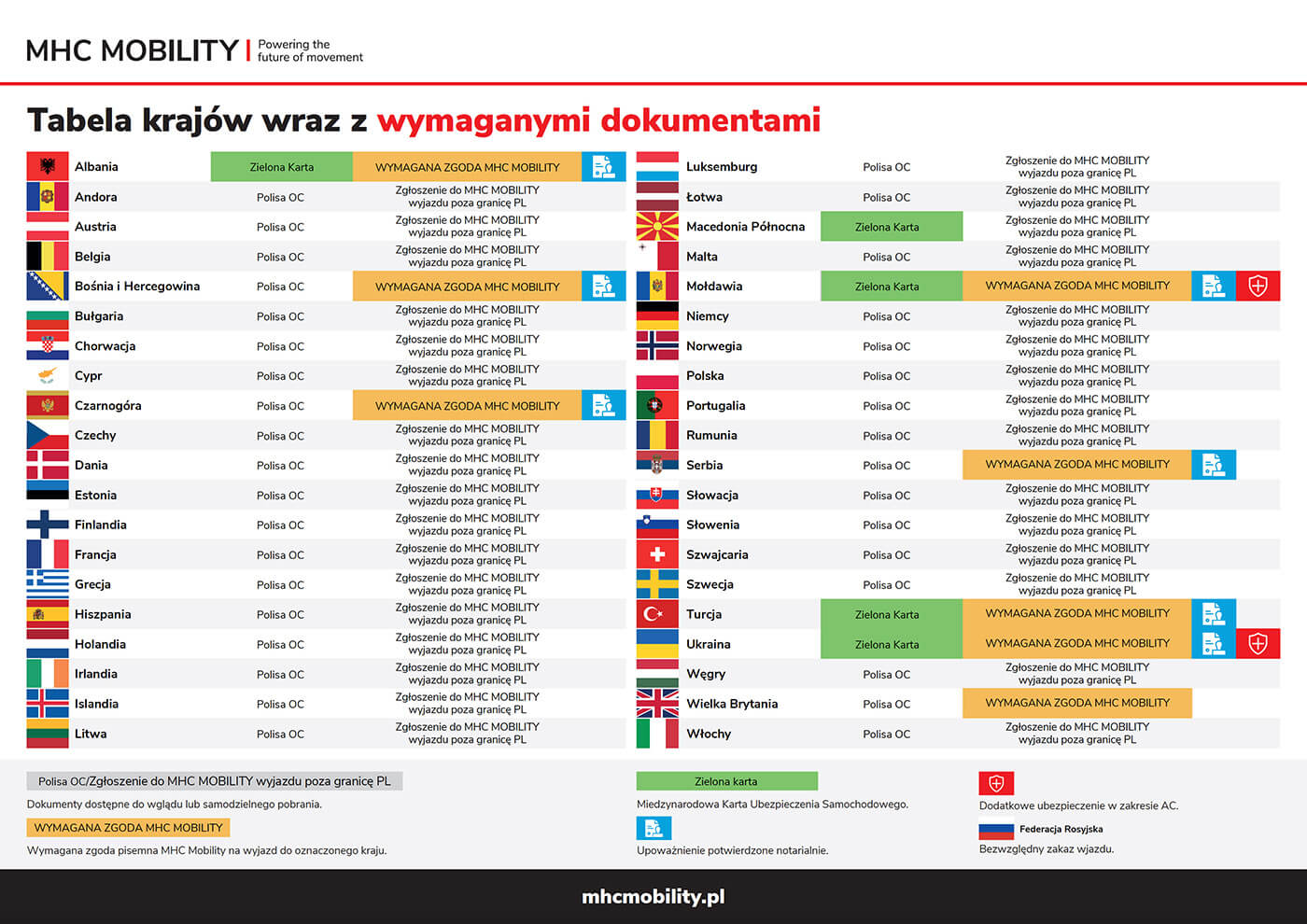 Jest to niezbędne do otrzymania stosownego upoważnienia oraz weryfikacji zakresu ubezpieczenia. Usługa MHC MOBILITY obejmuje podróże do krajów Unii Europejskiej oraz strefy Schengen.