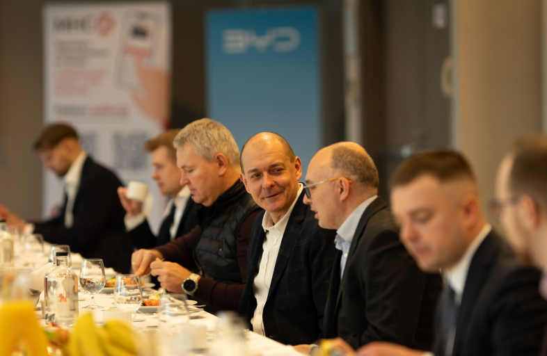 Równolegle, Paweł Wasążnik z firmy BYD przybliżył historię chińskiej marki, która dynamicznie zdobywa uznanie na polskim rynku. Paweł przedstawił ewolucję firmy, akcentując jej zaangażowanie w badania i rozwój, a także innowacyjne rozwiązania technologiczne, które wyróżniają BYD na tle konkurencji. Uczestnicy mieli okazję poznać najpopularniejsze modele oferowane przez markę, a także dowiedzieć się, jak zaawansowane technologie wpływają na komfort i bezpieczeństwo użytkowników. Prezentacja była doskonałym przykładem, jak globalne trendy i lokalne realia spotykają się, tworząc nowe możliwości rozwoju branży. Na podsumowanie prezentacji, uczestnicy mieli okazję na żywo obejrzeć kilka modeli samochodów osobowych BYD.
